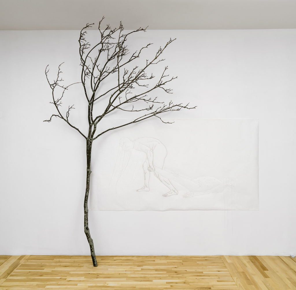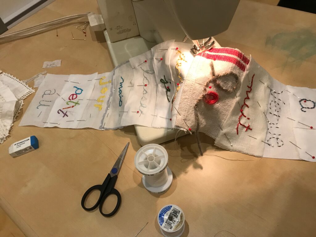 Interpellée par les aléas de l’âme humaine, Anne Billy présente dans cette série d’œuvres une histoire de collaboration et de tendresse dans laquelle se côtoient et se supportent jeunesse et vieillesse. Dans ce corpus, l’artiste présente des scènes intimistes qui suggèrent différentes formes de communication entre un petit-fils et son grand-père. Les silhouettes brodées des protagonistes vous amènent vers le monde symbolique de l’artiste autour de cette relation intergénérationnelle. À ce dialogue finement ficelé, s’ajoutent des courtepointes produites à partir des agendas du grand-père.